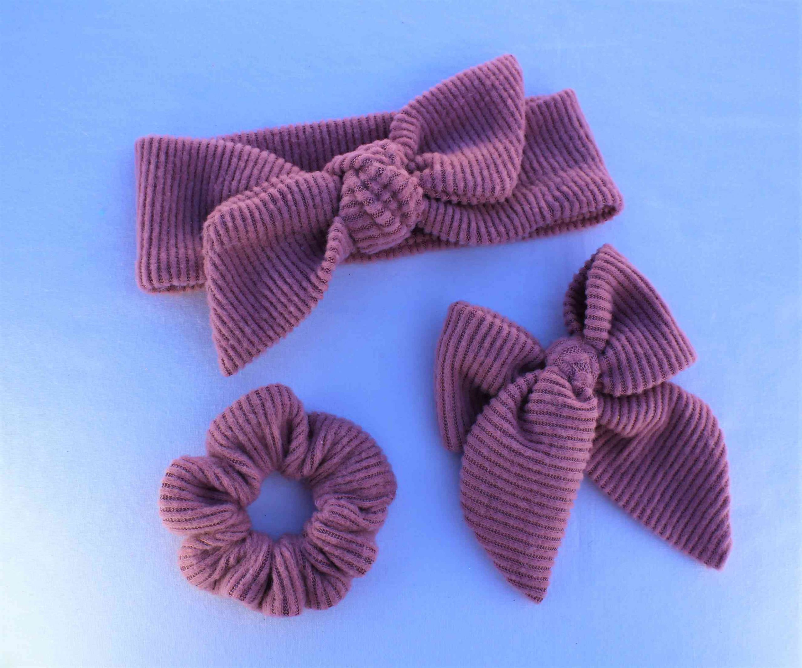 We have these adorable winter colours available. The material is stretchy, soft and comfy just for little heads. If your little girl is under a year you have the option of requesting headbands.